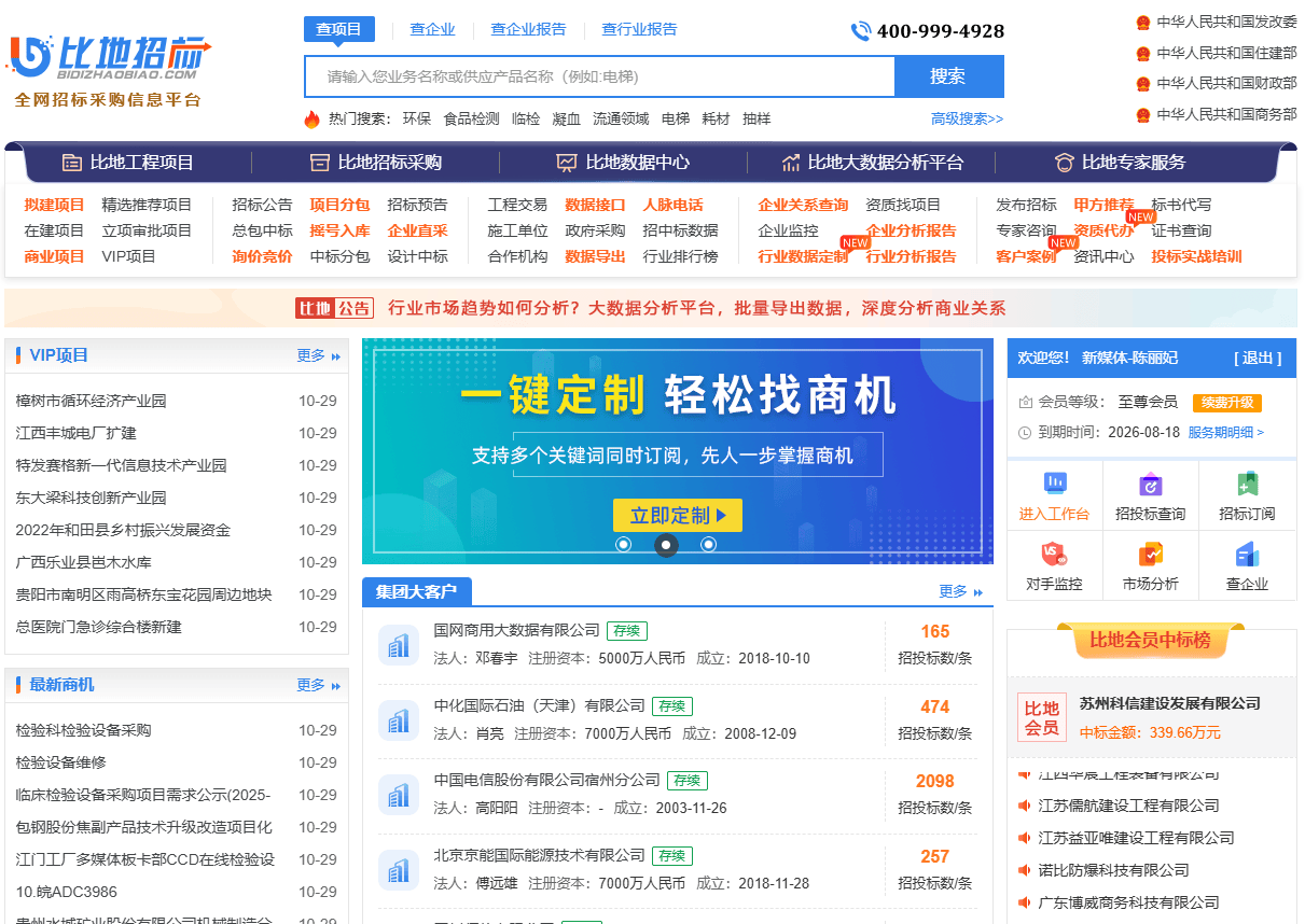 适用人群:想兼顾政府和国企项目的企业,比如做市政工程的,能同时查当地政府招标和国企合作项目;