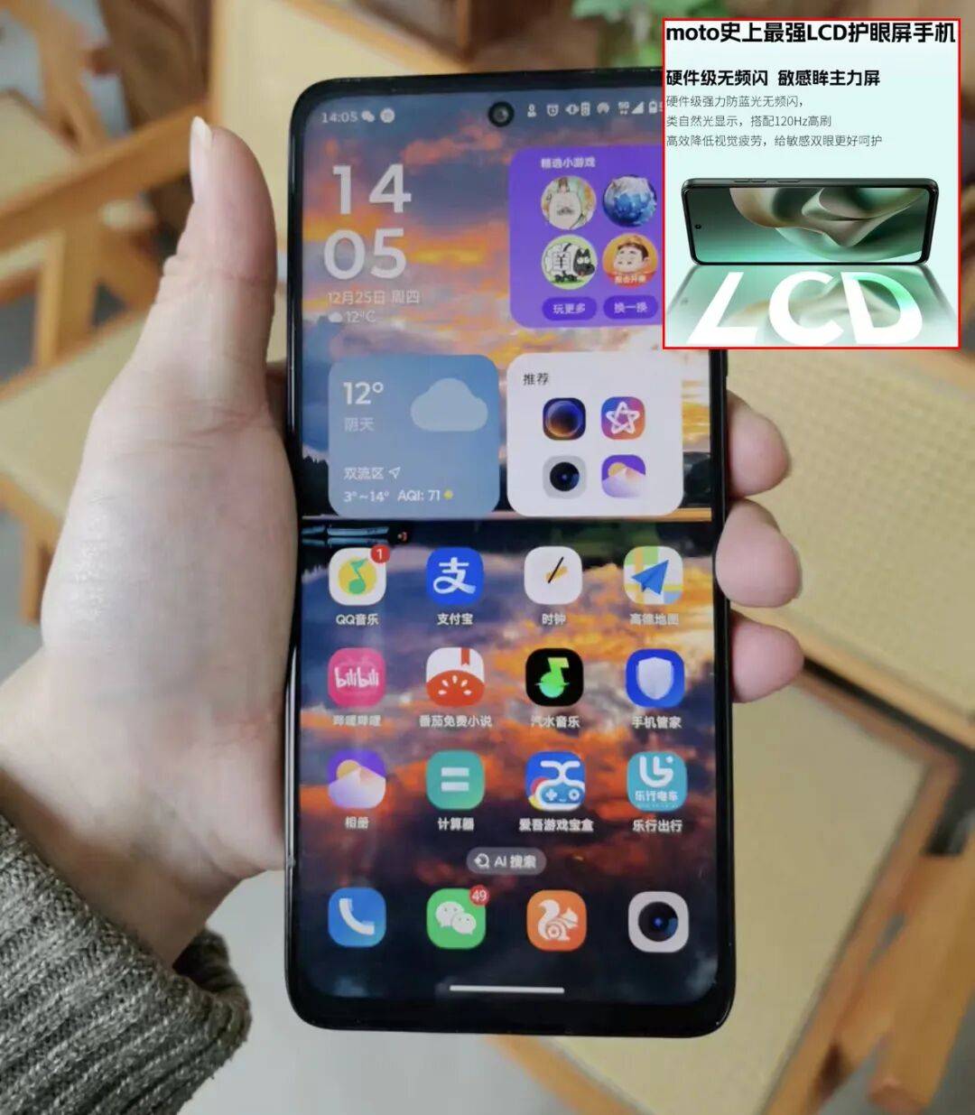 再结合用户晒单聊下产品,这是今年10月推出的新机,官方宣传是moto史上最强LCD屏手机,采用了6.72英寸LCD护眼屏,分辨率是2400x1080,刷新率是120Hz,支持全程DC调光和硬件级防蓝光,无频闪,峰值亮度1050nits。