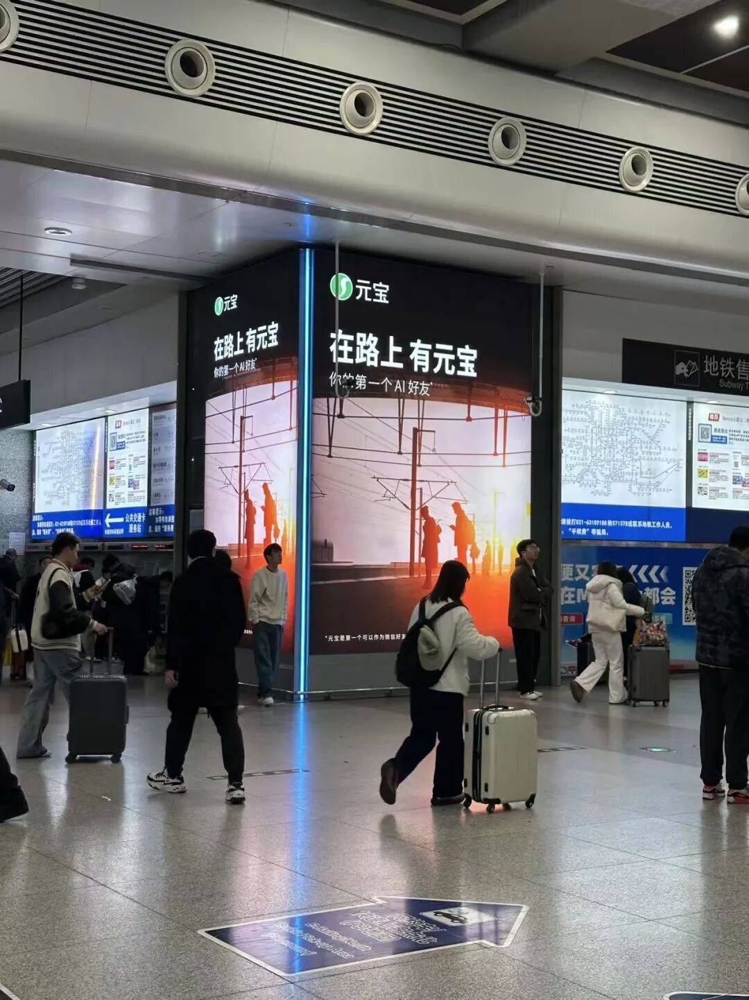 在刚刚过去的春节假期这一重要窗口,腾讯、阿里、字节跳动等大型科技公司纷纷发力旗下AI应用。其中,腾讯早早行动,在春节假期开始之前,便宣布拿出10亿元“真金白银”吸引用户下载元宝App,并一度打通微信与QQ的社交链为元宝引流。在腾讯集团员工大会上,马化腾也对元宝寄予厚望,希望重现2015年微信红包的高光时刻。除了在线上发起红包攻势,在线下场景中,腾讯也在春节期间人流量集中的全国各地高铁站开启地推模式。