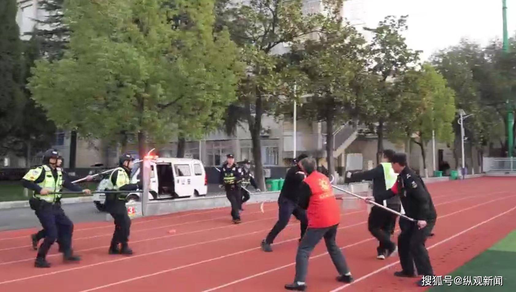 “遇到突发情况,首先要确保学生撤离到安全区域。”派出所民警正在对保安人员进行钢叉、盾牌等防暴器材的实操培训。开学前夕,治安部门组织各派出所深入辖区学校,指导校方完善应急处置预案,开展防暴恐、防火等实战演练。通过手把手教授安保技能、模拟突发场景处置,有效提升了校园安保力量的应急处突能力,确保关键时刻拉得出、用得上,让安全的“内功”练在日常。