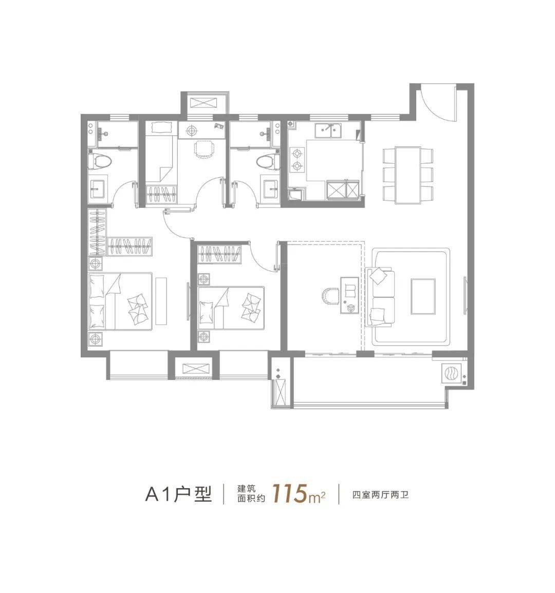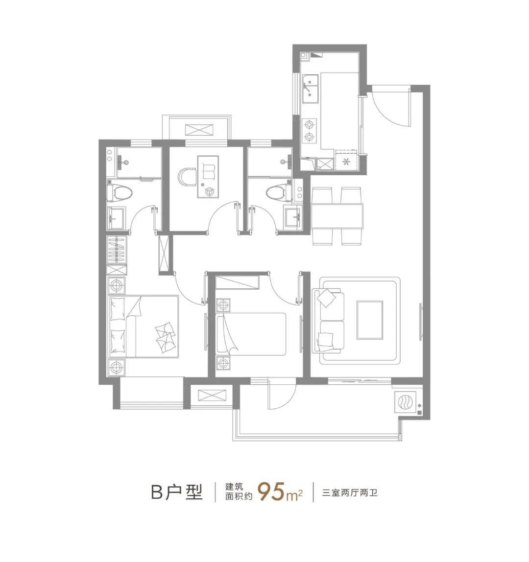 还有南向的超大宽面阳台、整体南北通透的格局、还有主卧套房的设计,这个户型实现了多数人对于未来生活的期待。