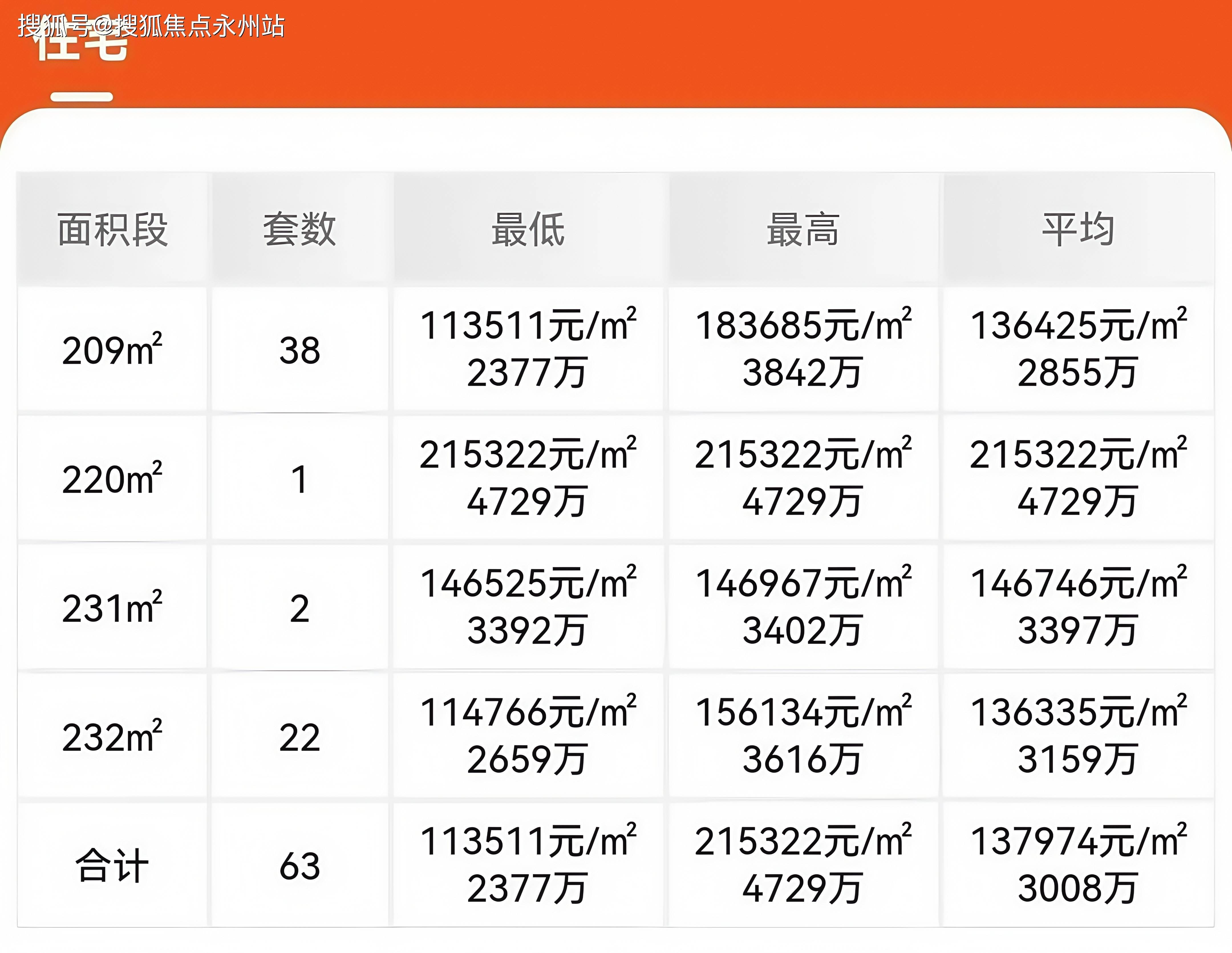 2024年10月16日,项目正式取得预售证,推出63套别墅,户型建筑面积约209-232平方米,备案均价13.8万元/平方米,套均总价约3008万元/套其中。,最贵的一套房源单价高达21.53万元,总价4729万元。