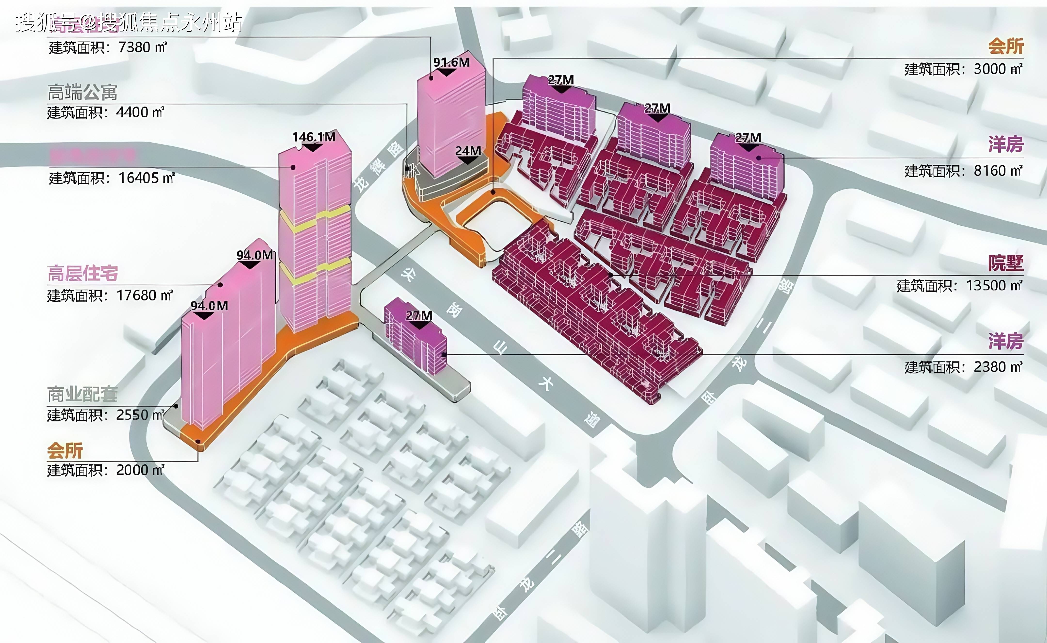B区(北区):计容积率建筑面积约3.9万平方米,规划为2栋建筑高度约110.85米、共34层的高层住宅。