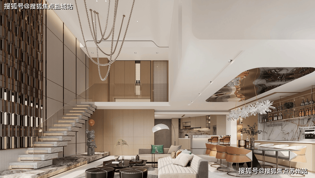奢阔宽厅,大面积玻璃寰幕墙映衬繁华街景,客厅挑空设计,更具空间感的大气朗阔感受,吧台连接陈列展示区,增添优雅的层峯底色,独立卧室层,三间套房奢华配置,尊享静谧。