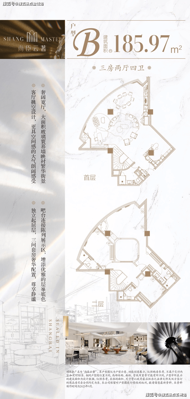 更具时尚眼光的轻奢质感,熨帖生活的质感;大面积、高挑空朗阔空间给予生活更多创意与可能;四大户型、超高双倍得房率,定制云中行政宽邸。