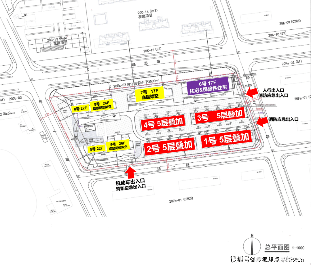 从规划方案来看,「翡雲悦府」二期楼栋的分布总体呈南低北高,东低西高的格局。东南侧分布4栋叠墅,西侧排布2栋22-26层的大高层,北侧排布2栋17层的高层,地块内保障房位于东北角。