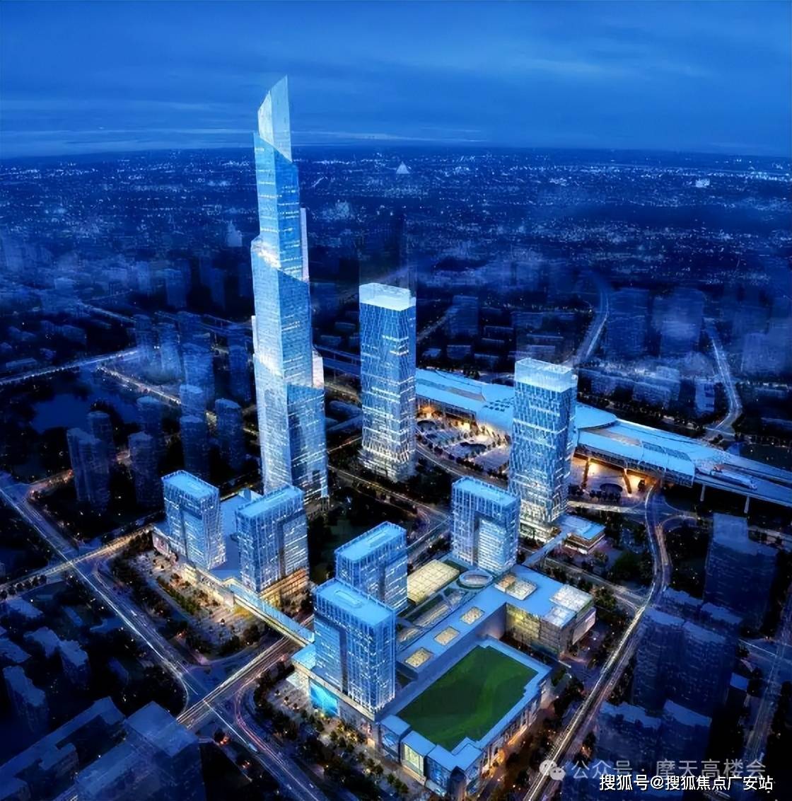 :整个项目规划科学合理,商业面积 25 万方,分布在地下二层至地上四层,办公楼面积 59.4 万方。A1 部分由商业及三栋 100 米高办公楼组成,A2 部分由商业、两栋 100 米高办公楼及一栋 480 米(102 层)超高层组成,超高层涵盖超高层办公与五星级酒店功能。此外,还有国顺地块的 250 米超高层建筑及国开地块的 200 米超高层建筑,形成了极具规模的地标集群。
