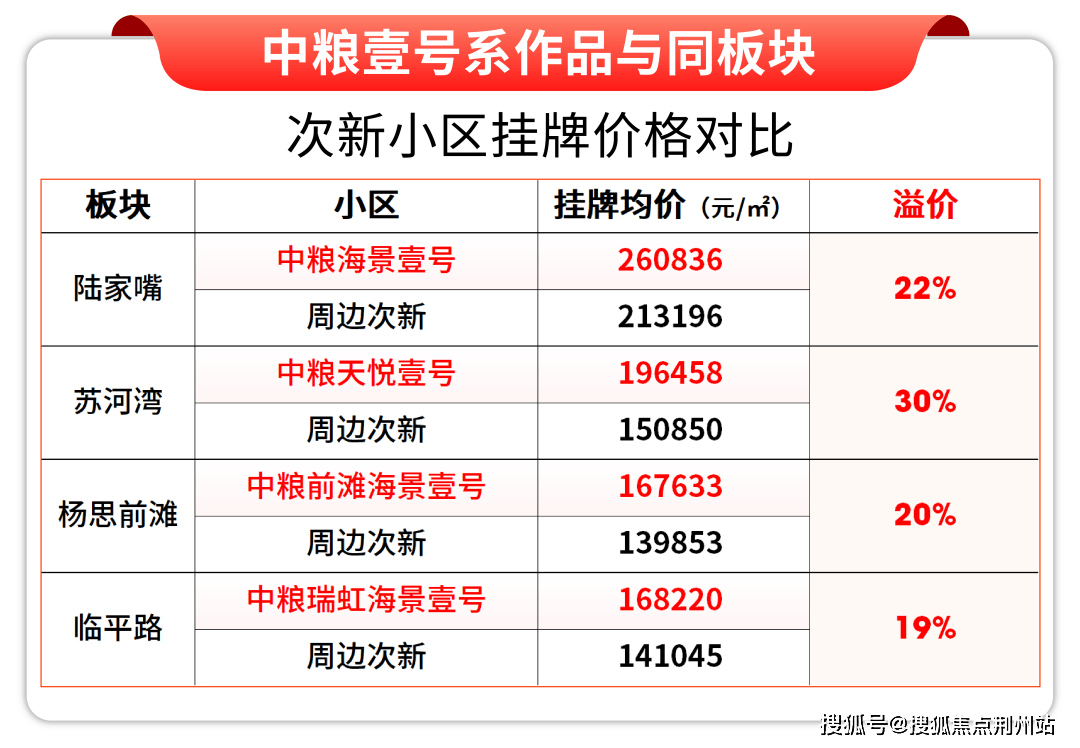 再比如瑞虹海景壹号,北外滩早期作品,四开四罄热销185亿,当时新房11万多/㎡,现在瑞虹新房16.6万/㎡,中粮的二手房更是稳定在17万元/㎡左右。