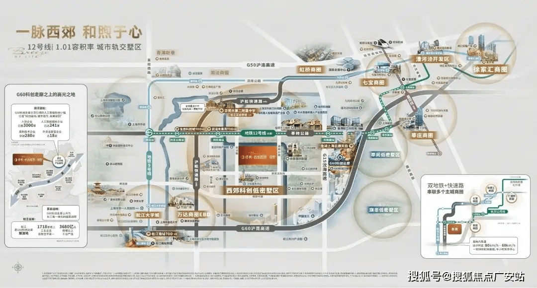 交通方面,保利西郊和煦构建了“轨交+自驾+公交”的立体化出行体系。项目紧邻在建的12号线西延伸段沪松公路站,直线年通车。通车后,业主可直达徐家汇、漕河泾等核心商圈,8站直达漕河泾、12站到人民广场,无缝衔接市区核心板块,大大缩短了通勤时间,提升了出行效率。自驾出行同样便捷,项目周边有沪松公路、嘉松中路、G60沪昆高速等主干道,驱车15分钟可达虹桥枢纽,30分钟覆盖闵行、青浦等区域,无论是日常通勤还是周末出游,都能轻松畅达。此外,项目1公里内有13个公交站点,涵盖松江57路、松莘线路等多条公交线路,满足业主日常短途出行需求,即使没有私家车,也能便捷出行。