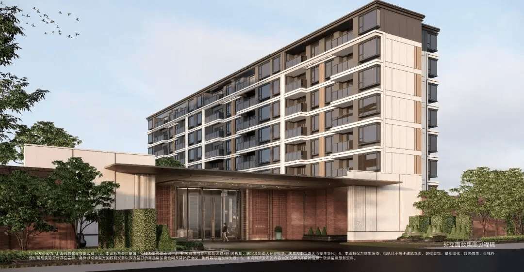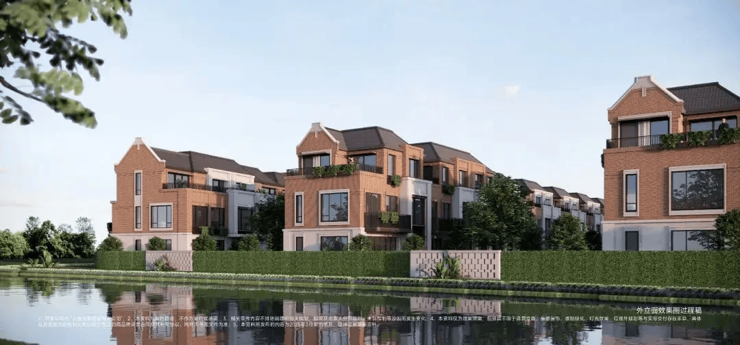 社区内部园林景观精心雕琢,一步一景、移步换景,绿植繁茂、曲径通幽,搭配休闲步道、邻里空间等设施,营造出雅致宜居的社区氛围。建筑风格融合海派美学与现代简约设计,外立面选用米白色真石漆与定制海派陶土砖结合,搭配现代玻璃幕墙元素,既延续百年上海的人文底蕴,又彰显时尚质感。联排别墅采用红砖风貌立面,致敬百年上海人文繁茂;墅境洋房以朴素亲切的暖灰色调与精致斜切的腰线组合,形成高级宁静的住区氛围。