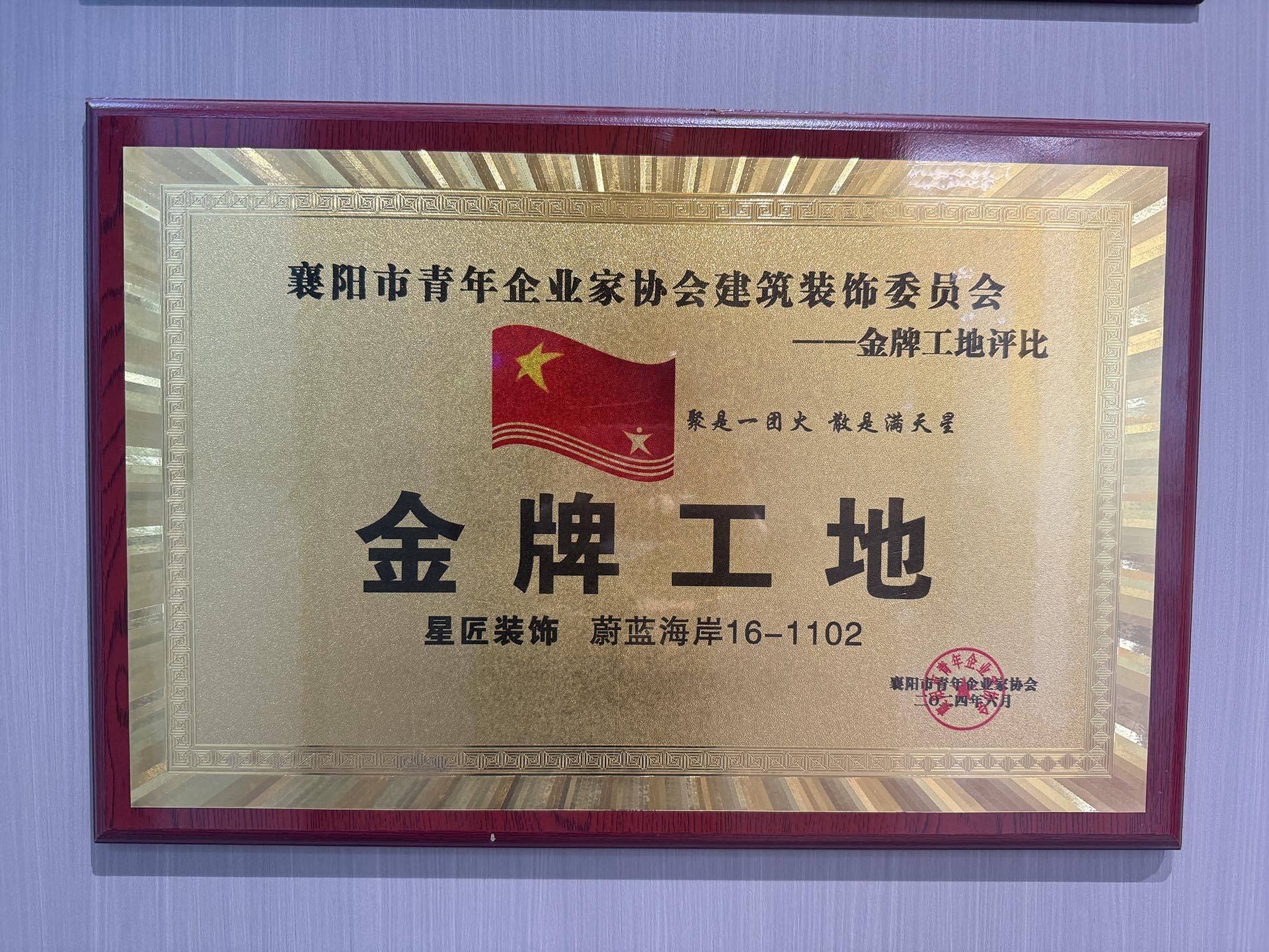 星匠装饰的蔚蓝海岸16-1102工地,被官方认证为“金牌工地标杆企业”,其施工管理、现场规范、工艺标准均达到行业最高级别,成为襄阳家装行业工地管理的典范,据统计,公司金牌工地占比达85%,远高于本地行业45%的平均水平。